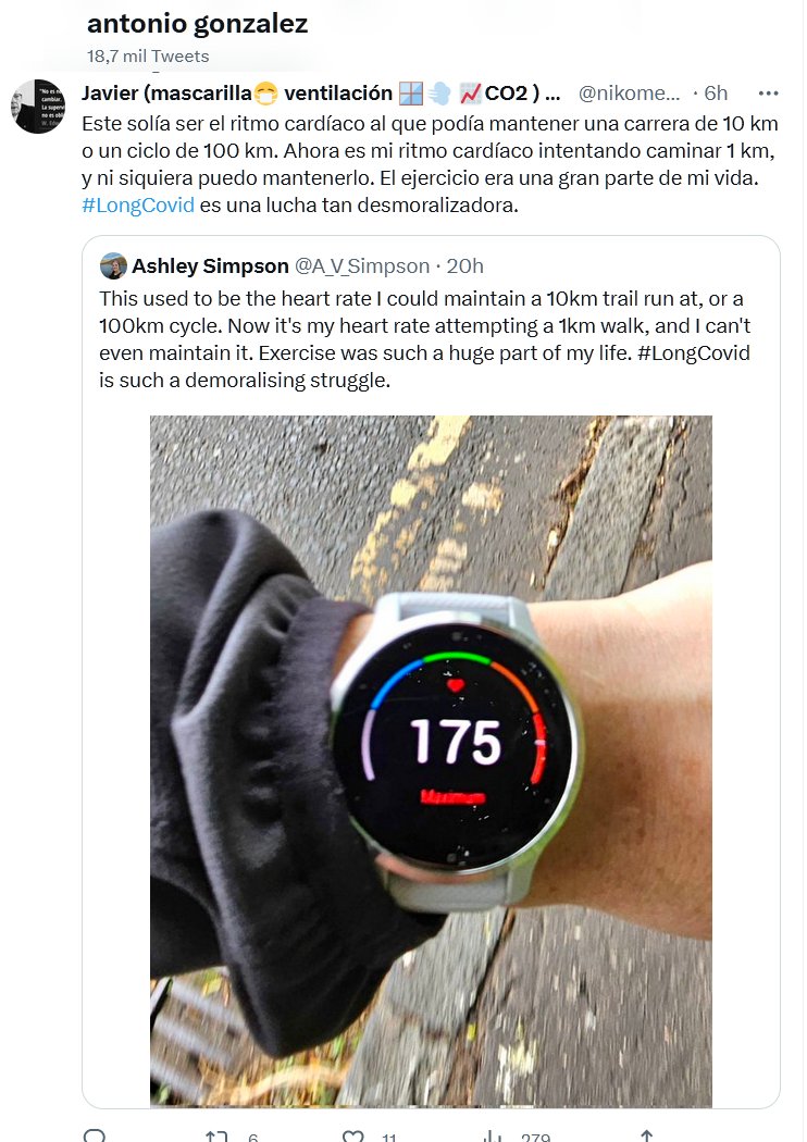 «ES LEVE, NO AFECTA A JÓVENES SANOS» Este solía ser el ritmo cardíaco al que podía mantener una carrera de 10 km o un ciclo de 100 km. Ahora es mi ritmo cardíaco intentando caminar 1 km, y ni siquiera puedo mantenerlo. El ejercicio era una gran parte de mi vida. #LongCovid es una lucha tan desmoralizadora.