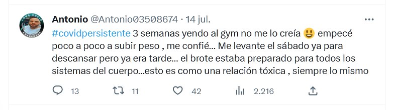 TESTIMONIOS #covidpersistente «3 semanas yendo al gym no me lo creía 😃 empecé poco a poco a subir peso , me confié… Me levante el sábado ya para descansar pero ya era tarde… el brote estaba preparado para todos los sistemas del cuerpo…esto es como una relación tóxica , siempre lo mismo»