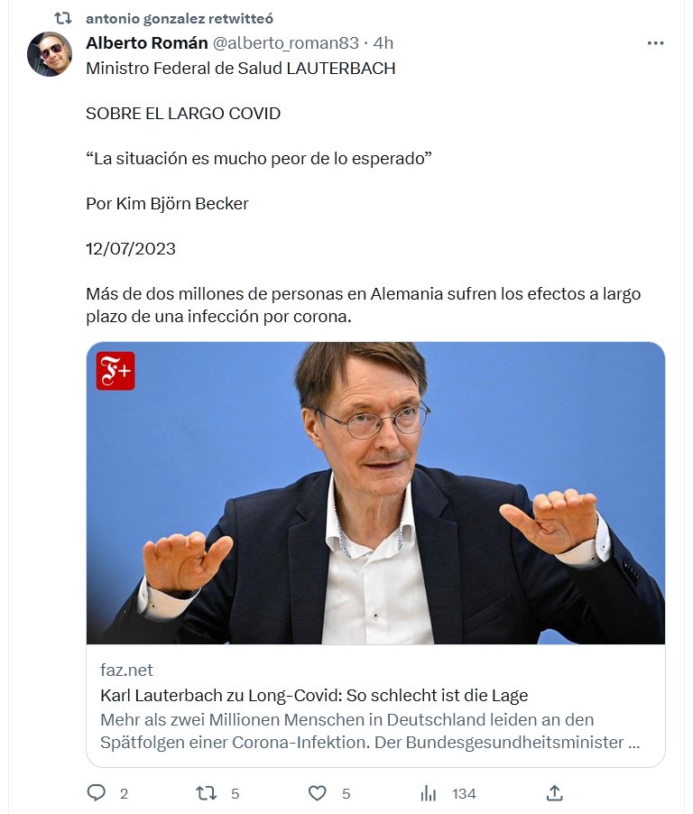 Ministro Federal de Salud LAUTERBACH SOBRE EL LARGO COVID “La situación es mucho peor de lo esperado” Por Kim Björn Becker 12/07/2023 Más de dos millones de personas en Alemania sufren los efectos a largo plazo de una infección por corona.