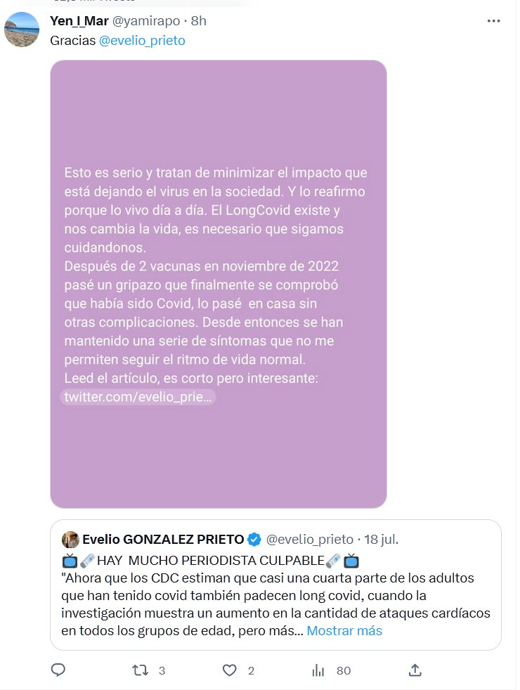 TESTIMONIOS: SE VACUNÓ DOS VECES, LE AGARRÓ COVID Y AHORA TIENE LONGCOVID Gracias @evelio_prieto Posted on julio 19, 2023 por coronado