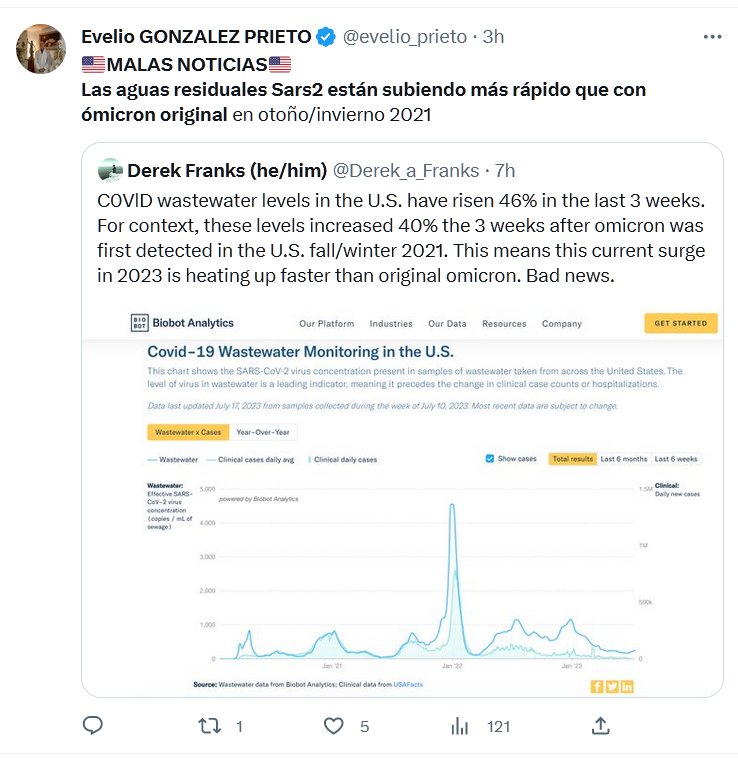 🇺🇸MALAS NOTICIAS🇺🇸 Las aguas residuales Sars2 están subiendo más rápido que con ómicron original en otoño/invierno 2021 : Los niveles de aguas residuales de C0VlD en los EE. UU. aumentaron un 46 % en las últimas 3 semanas