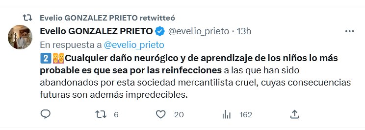 Cualquier daño neurógico y de aprendizaje de los niños lo más probable es que sea por las reinfecciones a las que han sido abandonados por esta sociedad mercantilista cruel, cuyas consecuencias futuras son además impredecibles.