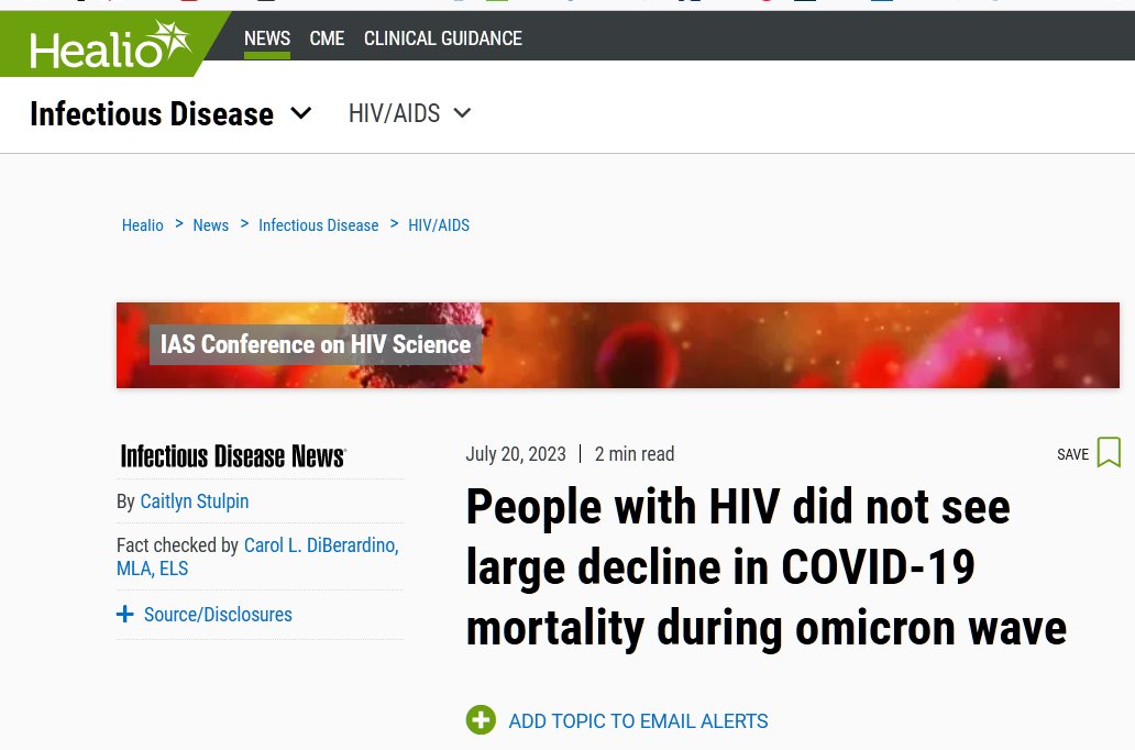 EN INGLÉS Las personas con VIH no vieron una gran disminución en la mortalidad por COVID-19 durante la ola de omicron Posted on julio 20, 2023 por coronado https://www.healio.com/news/infectious-disease/20230720/people-with-hiv-did-not-see-large-decline-in-covid19-mortality-during-omicron-wave