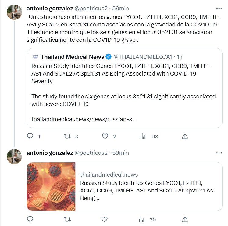 «Un estudio ruso identifica los genes FYCO1, LZTFL1, XCR1, CCR9, TMLHE-AS1 y SCYL2 en 3p21.31 como asociados con la gravedad de la COV1D-19. El estudio encontró que los seis genes en el locus 3p21.31 se asociaron significativamente con la COV1D-19 grave».