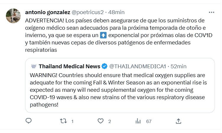 ADVERTENCIA! Los países deben asegurarse de que los suministros de oxígeno médico sean adecuados para la próxima temporada de otoño e invierno, ya que se espera un ⬆️ exponencial por próximas olas de COV1D y también nuevas cepas de diversos patógenos de enfermedades respiratorias