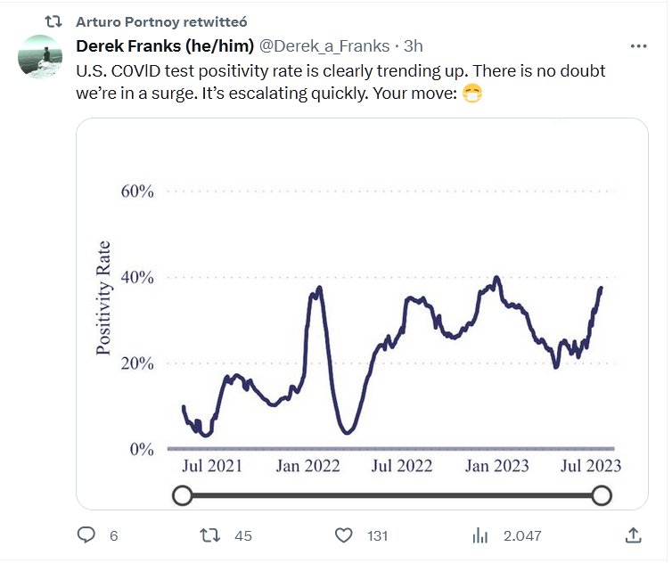 EN INGLÉS La tasa de positividad de la prueba C0VlD de EE. UU. claramente tiene una tendencia al alza. No hay duda de que estamos en una oleada. Está escalando rápidamente. Tu jugada: 😷 MASCARILLA
