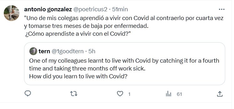 COVIDIOTAS «Uno de mis colegas aprendió a vivir con Covid al contraerlo por cuarta vez y tomarse tres meses de baja por enfermedad. ¿Cómo aprendiste a vivir con el Covid?» Posted on julio 28, 2023 por coronado