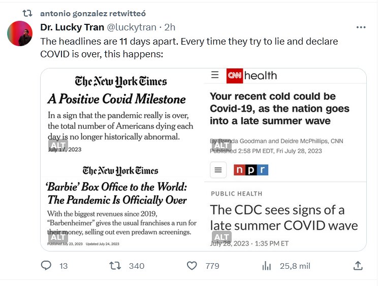 EN INGLÉS Los titulares tienen 11 días de diferencia. Cada vez que intentan mentir y declarar que el COVID ha terminado, sucede esto: SIGNOS DE NUEVA OLA COVID Posted on julio 29, 2023 por coronado