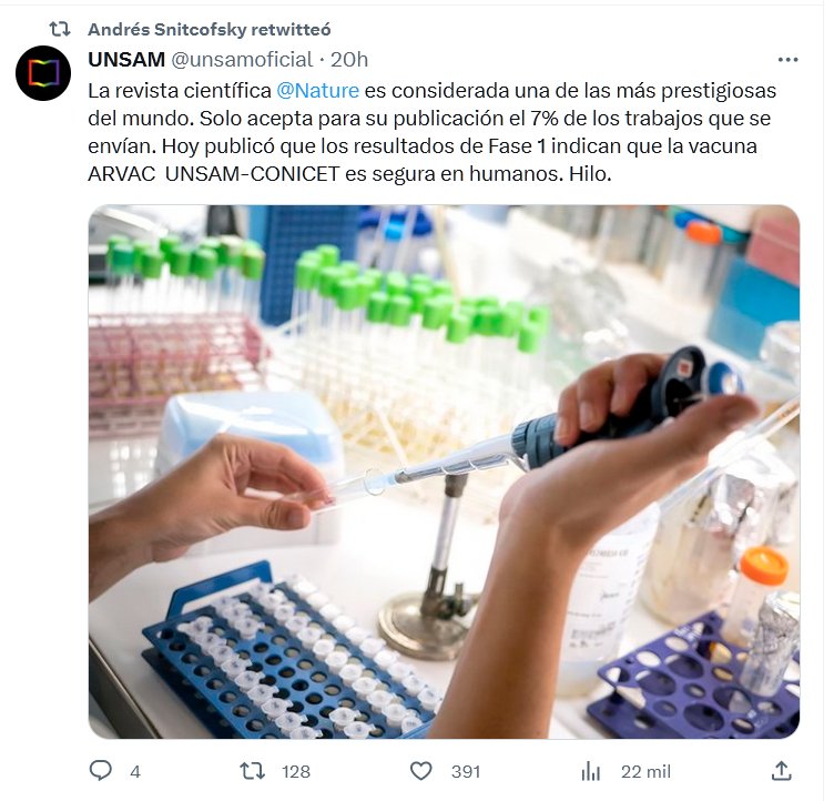 La revista científica @Nature es considerada una de las más prestigiosas del mundo. Solo acepta para su publicación el 7% de los trabajos que se envían. Hoy publicó que los resultados de Fase 1 indican que la vacuna ARVAC UNSAM-CONICET es segura en humanos