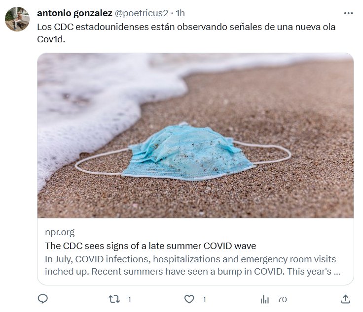Los CDC estadounidenses están observando señales de una nueva ola Covid Posted on julio 29, 2023 por coronado https://www.npr.org/sections/health-shots/2023/07/28/1190443473/the-cdc-sees-signs-of-a-late-summer-covid-wave