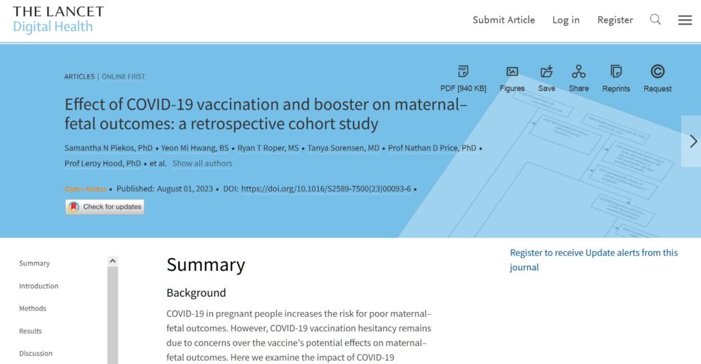 The Lancet EN INGLÉS Efecto de la vacunación y el refuerzo contra la COVID-19 en los resultados maternofetales: un estudio de cohorte retrospectivo Posted on agosto 1, 2023 por coronado https://www.thelancet.com/journals/landig/article/PIIS2589-7500(23)00093-6/fulltext