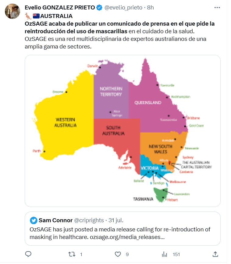 🦘🇳🇿AUSTRALIA OzSAGE acaba de publicar un comunicado de prensa en el que pide la reintroducción del uso de mascarillas en el cuidado de la salud. OzSAGE es una red multidisciplinaria de expertos australianos de una amplia gama de sectores.
