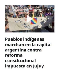 ES VIRAL Pueblos indígenas marchan en la capital argentina contra reforma constitucional impuesta en Jujuy Posted on agosto 2, 2023 por coronado https://actualidad.rt.com/actualidad/475158-pueblos-indigenas-marchan-argentina-reforma-jujuy