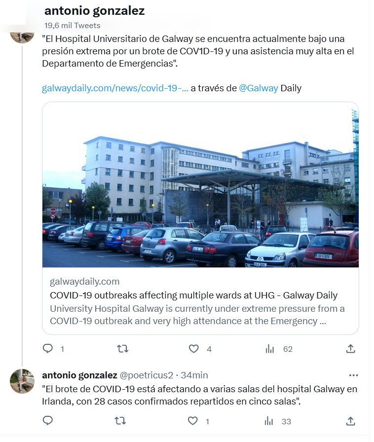 IRLANDA «El Hospital Universitario de Galway se encuentra actualmente bajo una presión extrema por un brote de COVID-19 y una asistencia muy alta en el Departamento de Emergencias». Posted on agosto 2, 2023 por coronado