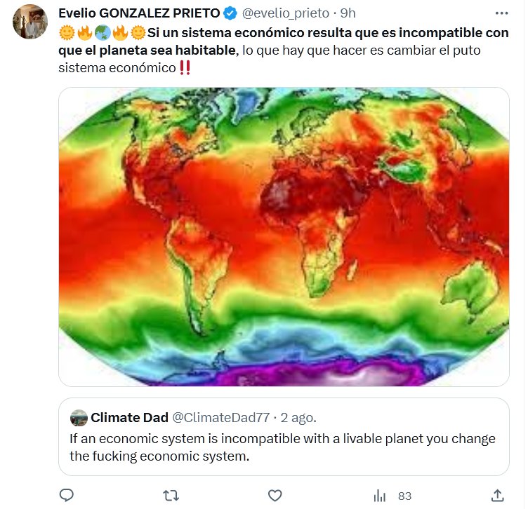 PESTE CAPITALISTA 🌞🔥🌏🔥🌞Si un sistema económico resulta que es incompatible con que el planeta sea habitable, lo que hay que hacer es cambiar el puto sistema económico‼️ Posted on agosto 3, 2023 por coronado