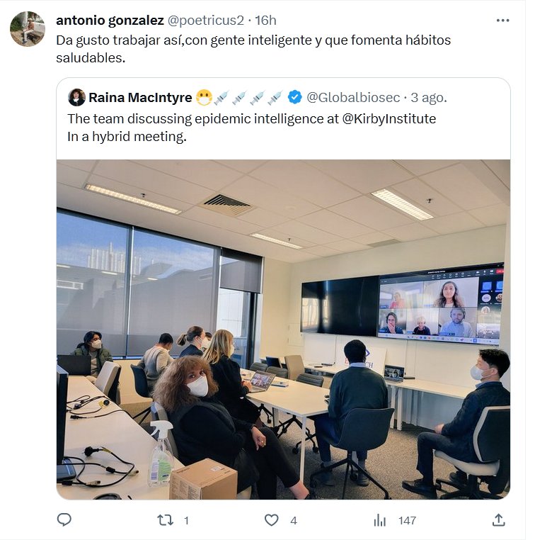 TESTIMONIOS Da gusto trabajar así,con gente inteligente y que fomenta hábitos saludables. «El equipo discutiendo sobre inteligencia epidémica en @KirbyInstitute» Posted on agosto 4, 2023 por coronado