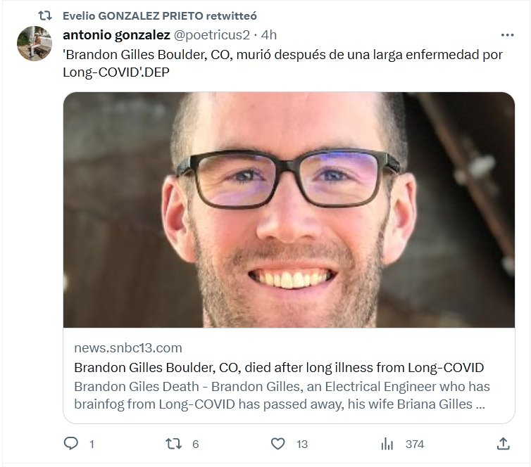 ‘Brandon Gilles Boulder, CO, murió después de una larga enfermedad por Long-COVID’.DEP Posted on agosto 5, 2023 por coronado