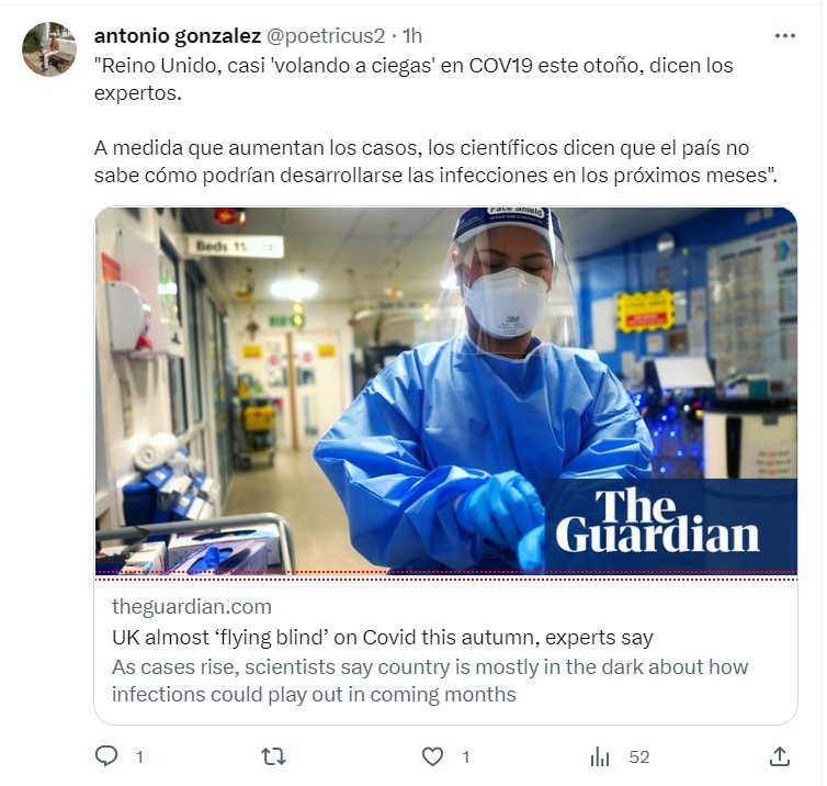 «FIN DE PANDEMIA» «Reino Unido, casi ‘volando a ciegas’ en COV19 este otoño, dicen los expertos. A medida que aumentan los casos, los científicos dicen que el país no sabe cómo podrían desarrollarse las infecciones en los próximos meses».