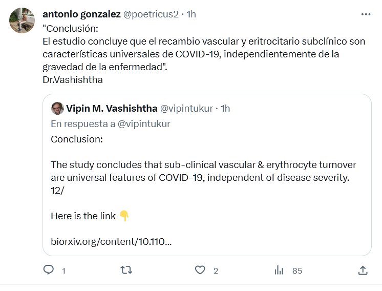 «Conclusión: El estudio concluye que el recambio vascular y eritrocitario subclínico son características universales de COVID-19, independientemente de la gravedad de la enfermedad». Dr.Vashishtha