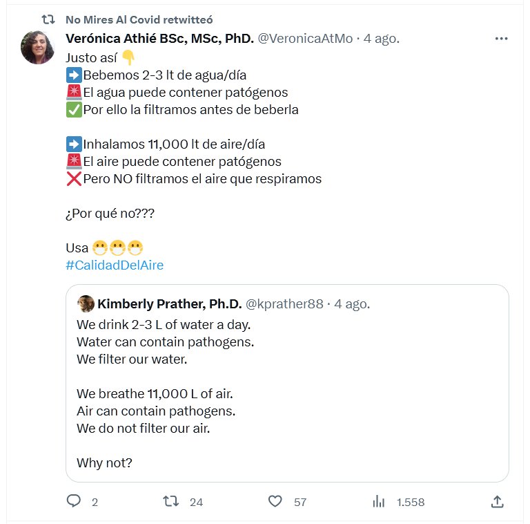 UNA MASCARILLA LO FILTRARÍA Justo así 👇 ➡️Bebemos 2-3 lt de agua/día 🚨El agua puede contener patógenos ✅Por ello la filtramos antes de beberla ➡️Inhalamos 11,000 lt de aire/día 🚨El aire puede contener patógenos ❌Pero NO filtramos el aire que respiramos ¿Por qué no??? Usa 😷😷😷 #CalidadDelAire
