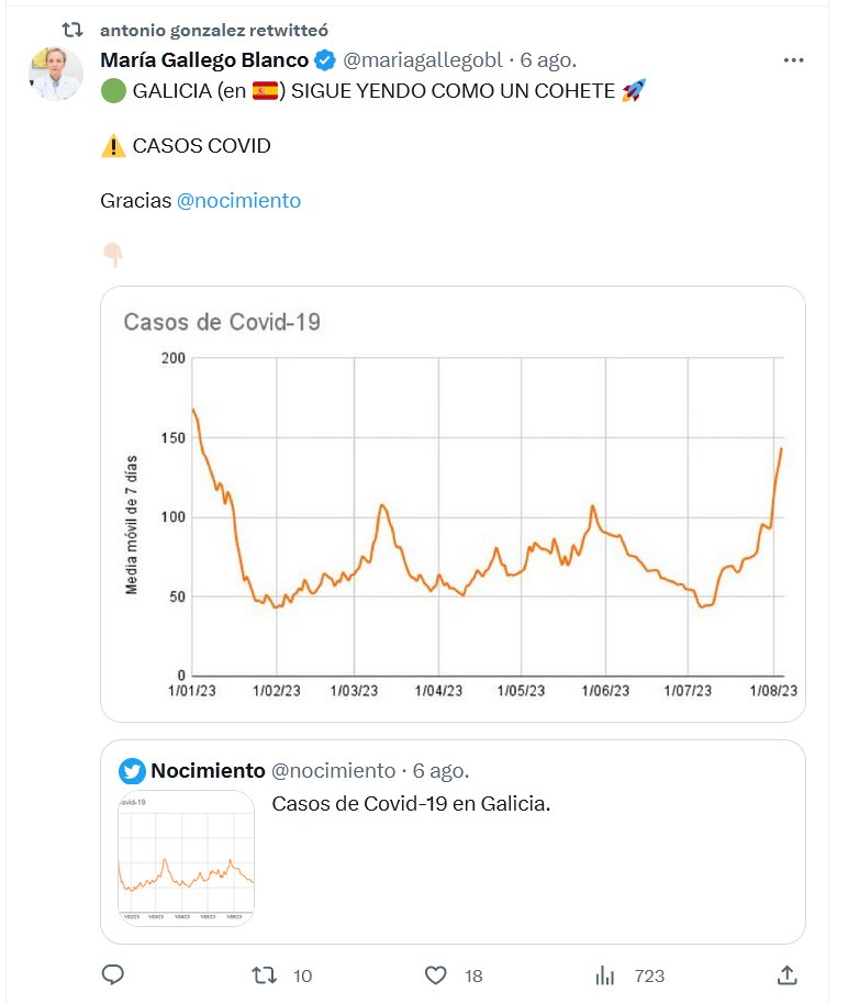 🟢 GALICIA (en 🇪🇸) SIGUE YENDO COMO UN COHETE 🚀 EN ⚠️ CASOS COVID Posted on agosto 7, 2023 por coronado