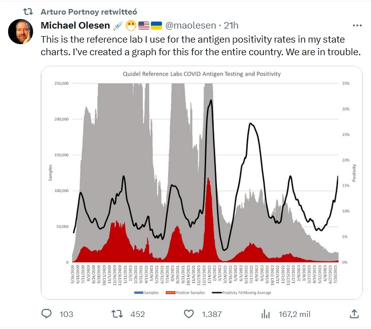 EN INGLÉS Este es el laboratorio de referencia que utilizo para las tasas de positividad de antígenos en mis gráficos estatales. He creado un gráfico para esto para todo el país. Estamos en problemas.