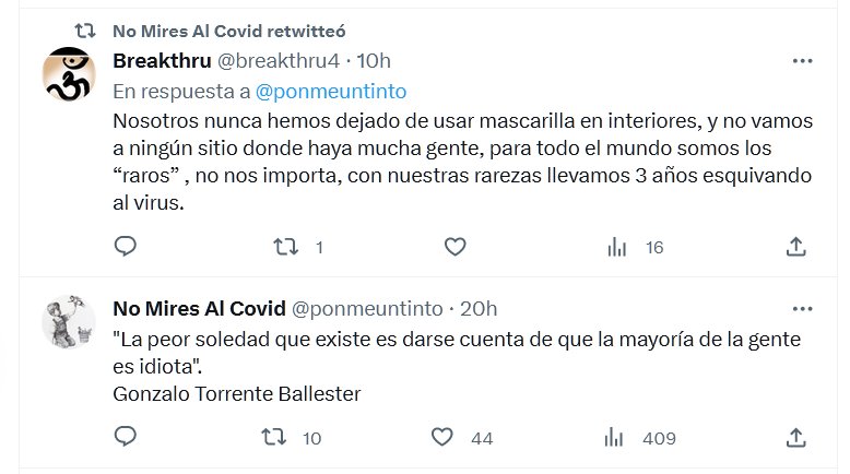 TESTIMONIOS Nosotros nunca hemos dejado de usar mascarilla en interiores, y no vamos a ningún sitio donde haya mucha gente, para todo el mundo somos los “raros” , no nos importa, con nuestras rarezas llevamos 3 años esquivando al virus.