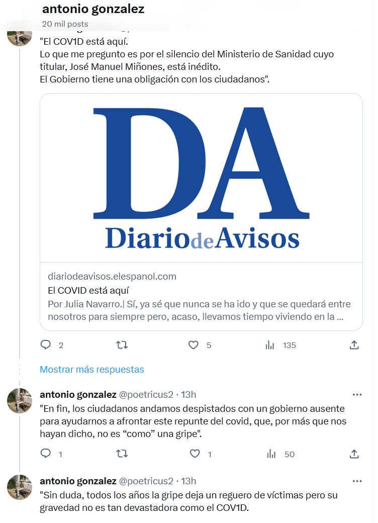 «El COVID está aquí. Lo que me pregunto es por el silencio del Ministerio de Sanidad cuyo titular, José Manuel Miñones, está inédito. El Gobierno tiene una obligación con los ciudadanos». Posted on agosto 9, 2023 por coronado https://diariodeavisos.elespanol.com/2023/08/el-covid-esta-aqui/