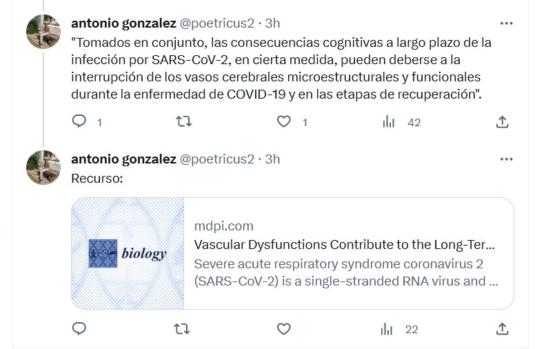 Las disfunciones vasculares contribuyen a los déficits cognitivos a largo plazo posteriores a la COVID-19. Posted on agosto 9, 2023 por coronado - https://www.mdpi.com/2079-7737/12/8/1106