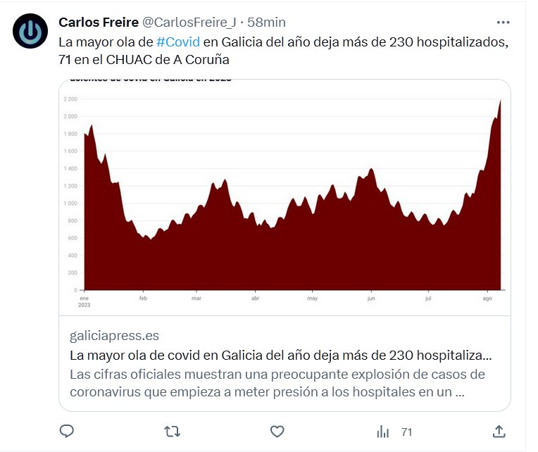 La mayor ola de #Covid en Galicia del año deja más de 230 hospitalizados, 71 en el CHUAC de A Coruña Posted on agosto 10, 2023 por coronado