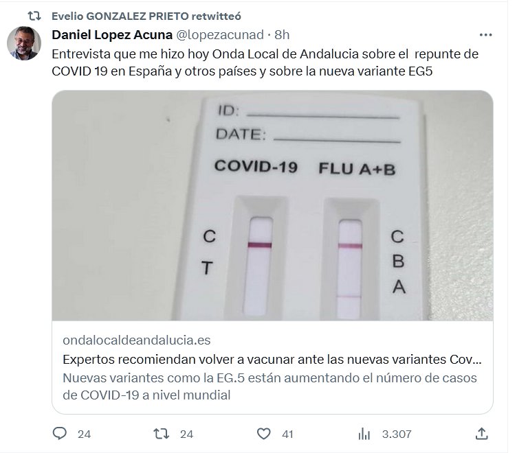 Entrevista que me hizo hoy Onda Local de Andalucia sobre el repunte de COVID 19 en España y otros países y sobre la nueva variante EG5 Posted on agosto 11, 2023 por coronado https://ondalocaldeandalucia.es/noticias/politica/nuevas-variantes-covid/