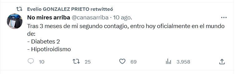 TESTIMONIOS Tras 3 meses de mi segundo contagio, entro hoy oficialmente en el mundo de: – Diabetes 2 – Hipotiroidismo Posted on agosto 11, 2023 por coronado