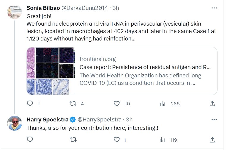 EN INGLÉS Reporte de caso: Persistencia de antígeno residual y ARN del virus SARS-CoV-2 en tejidos de dos pacientes con COVID largo Posted on agosto 13, 2023 por coronado https://www.frontiersin.org/articles/10.3389/fimmu.2022.939989/full