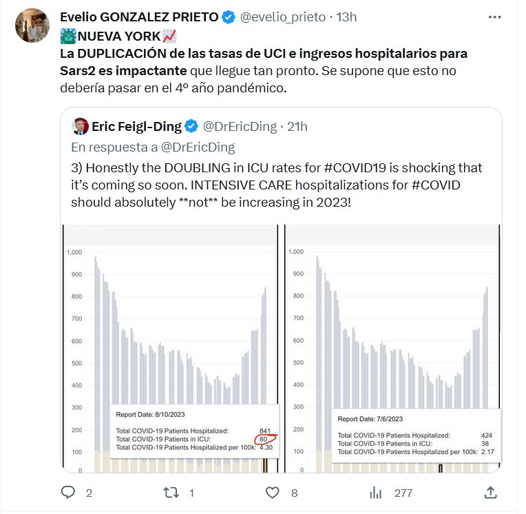 FIN DE PANDEMIA? 🗽NUEVA YORK📈 La DUPLICACIÓN de las tasas de UCI e ingresos hospitalarios para Sars2 es impactante que llegue tan pronto. Se supone que esto no debería pasar en el 4º año pandémico.