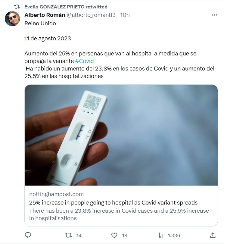 FIN DE PANDEMIA? Reino Unido 11 de agosto 2023 Aumento del 25% en personas que van al hospital a medida que se propaga la variante #Covid Ha habido un aumento del 23,8% en los casos de Covid y un aumento del 25,5% en las hospitalizaciones