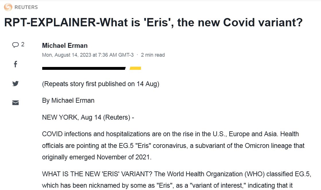 EN INGLÉS ¿Qué es ‘Eris’, la nueva variante del Covid? Las infecciones y hospitalizaciones por COVID están en aumento en los EE. UU., Europa y Asia. Los funcionarios de salud apuntan al coronavirus EG.5 «Eris», una subvariante del linaje Omicron que surgió originalmente en noviembre de 2021