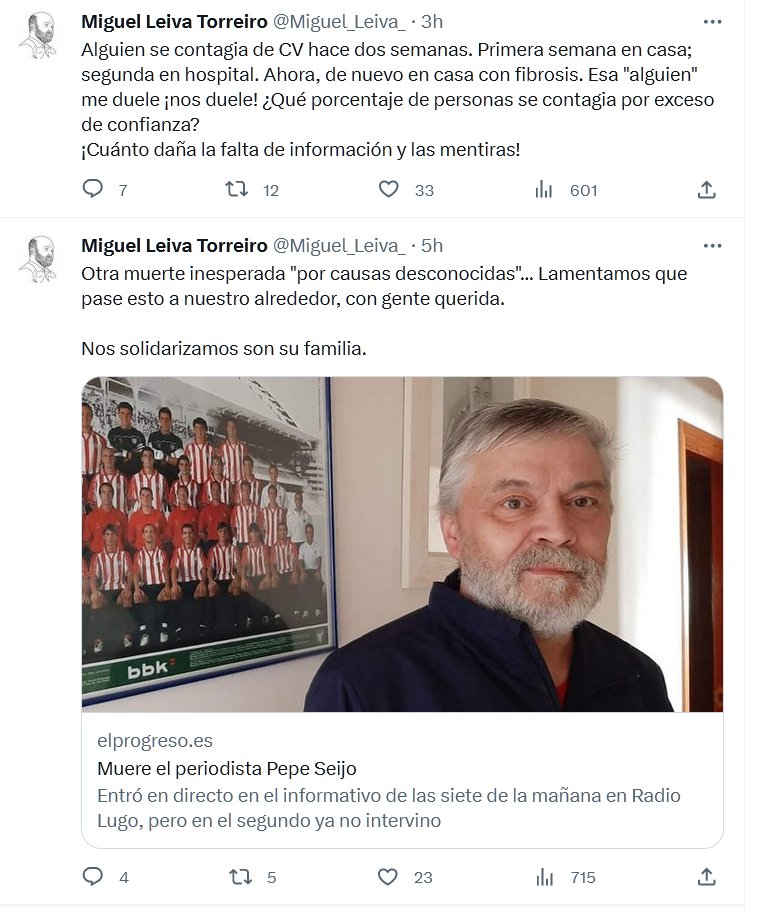 TESTIMONIOS Alguien se contagia de CV (COVID) hace dos semanas. Primera semana en casa; segunda en hospital. Ahora, de nuevo en casa con fibrosis. Esa «alguien» me duele ¡nos duele! ¿Qué porcentaje de personas se contagia por exceso de confianza? ¡Cuánto daña la falta de información y las mentiras!