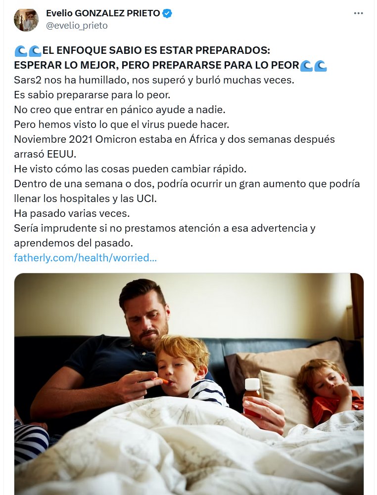 🌊🌊EL ENFOQUE SABIO ES ESTAR PREPARADOS: ESPERAR LO MEJOR, PERO PREPARARSE PARA LO PEOR🌊🌊 Sars2 nos ha humillado, nos superó y burló muchas veces. Es sabio prepararse para lo peor. No creo que entrar en pánico ayude a nadie. Pero hemos visto lo que el virus puede hacer.