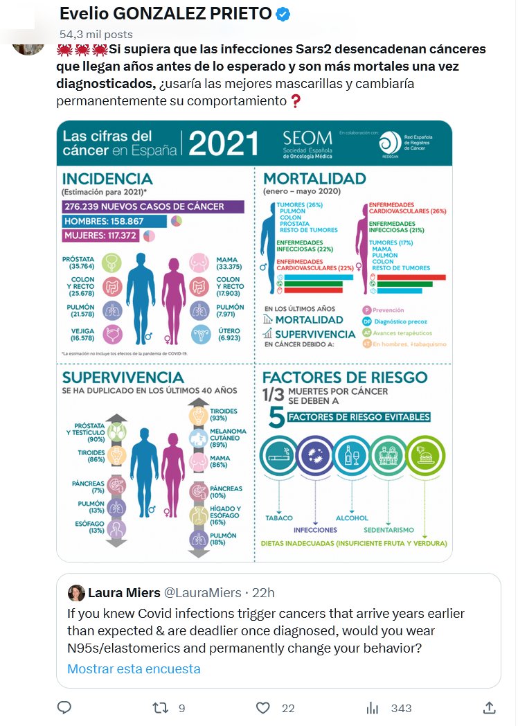 🦀🦀🦀Si supiera que las infecciones Sars2 desencadenan cánceres que llegan años antes de lo esperado y son más mortales una vez diagnosticados, ¿usaría las mejores mascarillas y cambiaría permanentemente su comportamiento❓