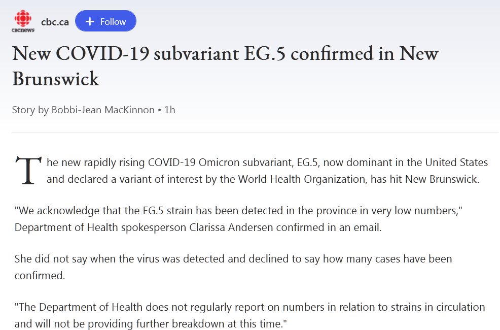 EN INGLÉS Nueva subvariante EG.5 de COVID-19 confirmada en New Brunswick Posted on agosto 16, 2023 por coronado https://www.msn.com/en-ca/health/other/new-covid-19-subvariant-eg5-confirmed-in-new-brunswick/ar-AA1flmII