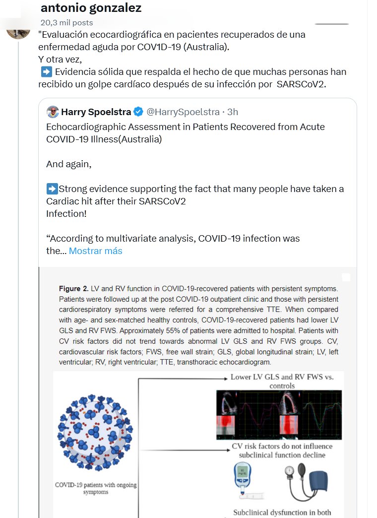 «Evaluación ecocardiográfica en pacientes recuperados de una enfermedad aguda por COV1D-19 (Australia). Y otra vez, ➡️ Evidencia sólida que respalda el hecho de que muchas personas han recibido un golpe cardíaco después de su infección por SARSCoV2.