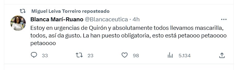 TESTIMONIOS Estoy en urgencias de Quirón y absolutamente todos llevamos mascarilla, todos, así da gusto. La han puesto obligatoria, esto está petaooo petaoooo petaoooo Posted on agosto 16, 2023 por coronado