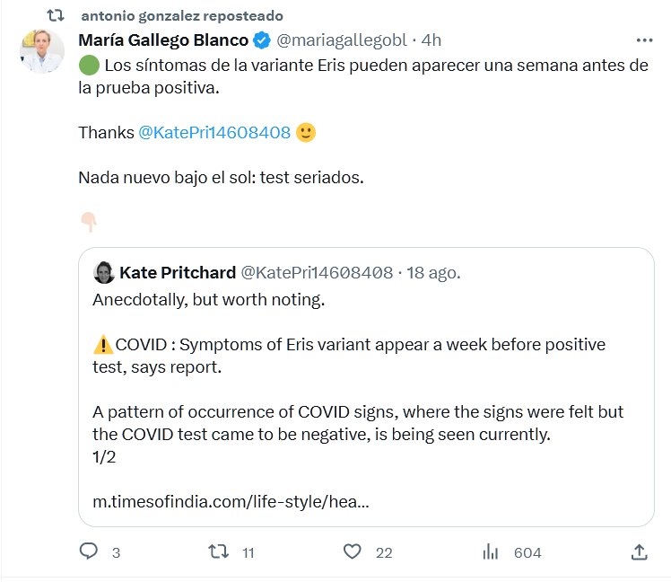 🟢 Los síntomas de la variante Eris pueden aparecer una semana antes de la prueba positiva. Thanks @KatePri14608408 🙂 Nada nuevo bajo el sol: test seriados. Posted on agosto 19, 2023 por coronado