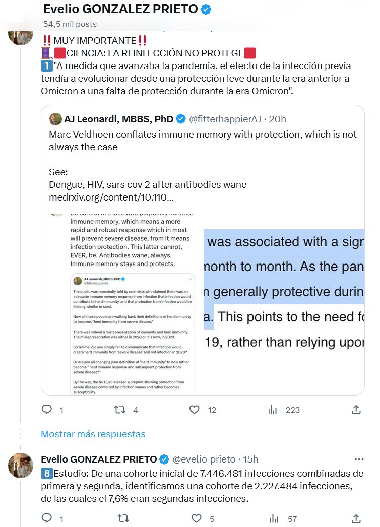 DR. AJ Leonardi, MBBS, PhD ‼️MUY IMPORTANTE‼️ 🧵🟥CIENCIA: LA REINFECCIÓN NO PROTEGE🟥 1⃣»A medida que avanzaba la pandemia, el efecto de la infección previa tendía a evolucionar desde una protección leve durante la era anterior a Omicron a una falta de protección durante la era Omicron».