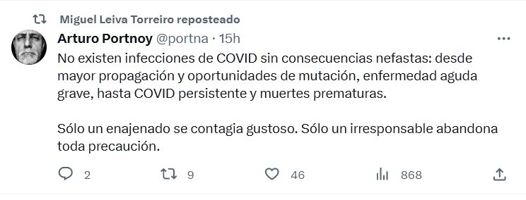 No existen infecciones de COVID sin consecuencias nefastas: desde mayor propagación y oportunidades de mutación, enfermedad aguda grave, hasta COVID persistente y muertes prematuras. Sólo un enajenado se contagia gustoso. Sólo un irresponsable abandona toda precaución.