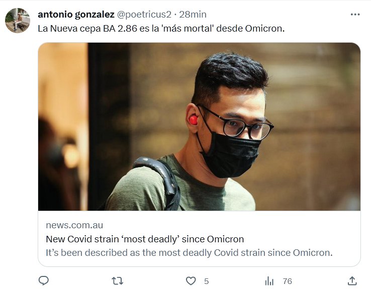 «ES LEVE», SEGUÍAN DICIENDO La Nueva cepa BA 2.86 es la ‘más mortal’ desde Omicron Posted on agosto 20, 2023 por coronado