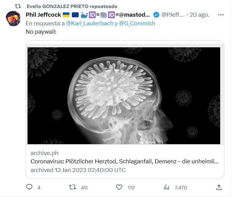 BOMBA DE ACCIÓN RETARDADA (EN ALEMÁN) Muerte súbita cardíaca, accidente cerebrovascular, demencia Las espeluznantes consecuencias a largo plazo de una infección corona olvidada hace mucho tiempo Se acabó el covid, el virus se fue, pero de repente hay arritmias cardíacas o ataques epilépticos. ¿Qué hace el Sars-CoV-2 en el cuerpo para que surjan tales síntomas?