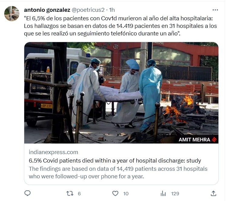 «El 6,5% de los pacientes con Covid murieron al año del alta hospitalaria: Los hallazgos se basan en datos de 14.419 pacientes en 31 hospitales a los que se les realizó un seguimiento telefónico durante un año».