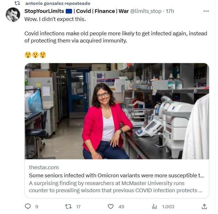 EN INGLÉS Guau. No esperaba esto. Las infecciones por covid hacen que las personas mayores sean más propensas a infectarse nuevamente, en lugar de protegerlas a través de la inmunidad adquirida. 😲😲😲