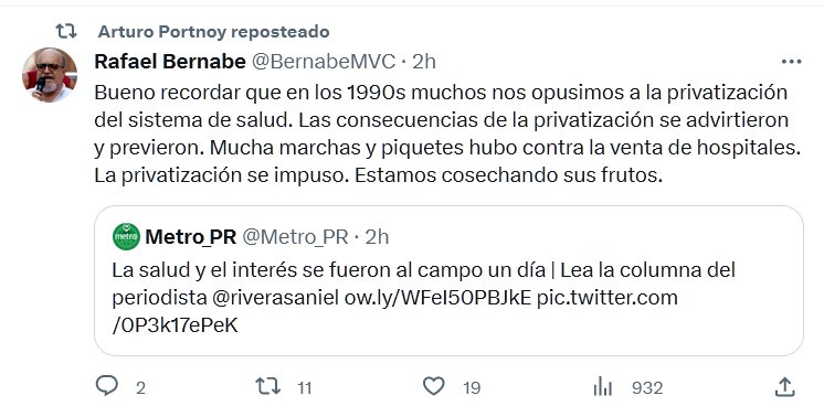 PESTE CACOCAPITALISTA Bueno recordar que en los 1990s muchos nos opusimos a la privatización del sistema de salud. Las consecuencias de la privatización se advirtieron y previeron. Mucha marchas y piquetes hubo contra la venta de hospitales. La privatización se impuso. Estamos cosechando sus frutos.